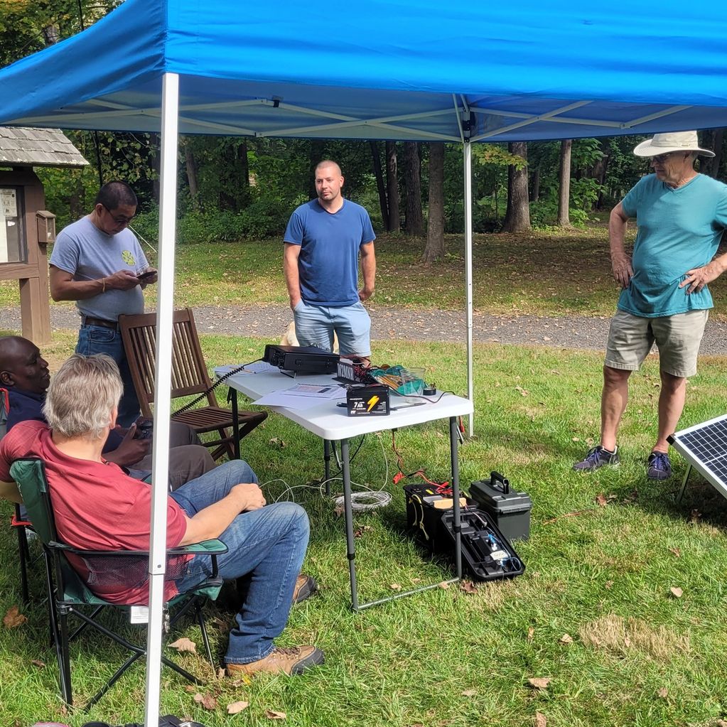 Gathered around the POTA Station (left to right) are Willie KC1RWP, Ken N1JKA, Dan AC1KV, Matt KE2GDS and JoeWA1SSB.
